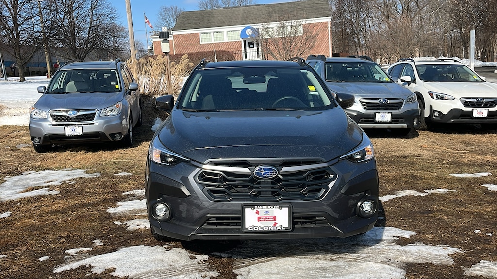 Clean CARFAX. Certified. Magnetite Gray Metallic 2025 Subaru Crosstrek Premium AWD Lineartronic CVT 2.5L 4-Cylinder DOHC 16V SYMMETRICAL ALL-WHEEL DRIVE, EXTENDED WARRANTY BACKED BY SUBARU!, SUBARU CERTIFIED PRE OWNED!, RETIRED SERVICE LOANER!, 10-Way Power Driver's Seat, All-Weather Package, Blind Spot Detection (BSD), BSD/RCTA & All Wthr Pkg & Pwr Dr. Seat & Pwr Moonrf, Dual-Mode Heated Front Seats, Heated Power Exterior Mirrors, Power Moonroof, Rear Cross-Traffic Alert (RCTA) System, Windshield De-Icer Wipers.
