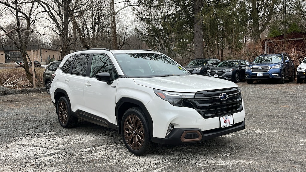 Certified. Crystal White Pearl 2025 Subaru Forester Hybrid Sport AWD Lineartronic CVT 2.5L 4-Cylinder DOHC 16V SUPER CLEAN, LOW MILES, 2.5L 4-Cylinder DOHC 16V, Navigation System.