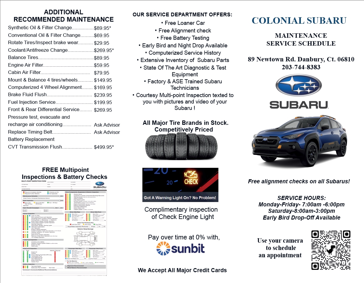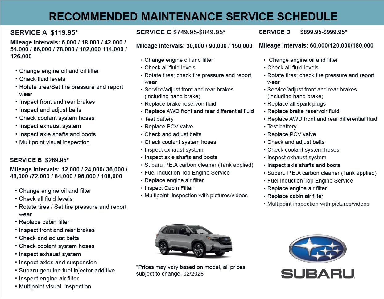 Service Pricing Menu | Connecticut Subaru Dealer