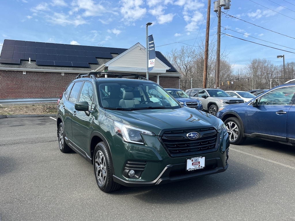 CARFAX One-Owner. Clean CARFAX. Certified. Cascade Green Silica 2023 Subaru Forester Premium AWD Lineartronic CVT 2.5L 4-Cylinder DOHC 16V EXTENDED WARRANTY BACKED BY SUBARU!, FULLY SERVICED, SUBARU CERTIFIED PRE OWNED!, Blind Spot Detection w/RCTA & Power Rear Gate, Blind-Spot Detection (BSD), Driver's Seatback Divided Pocket, Dual USB Charge Ports, EyeSight System, Multi-Function High Grade Display, Power Rear Gate.