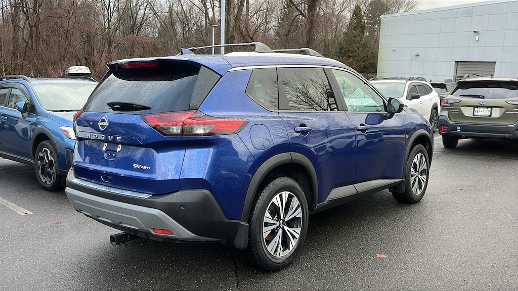 CARFAX One-Owner. Clean CARFAX. Caspian Blue Metallic 2023 Nissan Rogue SV AWD CVT with Xtronic 1.5L I3 Turbocharged DOHC 12V LEV3-ULEV50 201hp STUNNING CONDITION!, "SIGNATURE CERTIFIED POWERED BY ALLSTATE INCLUDES A 70 PT VEHICLE INSPECTION!, WITH A COMPLIMENTARY ALLSTATE 6 MONTH 6,000 MILES LIMITED WARRANTY!, AWD, Heated Driver & Front Passenger Seats, Heated Leather Wrapped Steering Wheel, Leatherette Door Trim Inserts w/Stitch, Panoramic Moonroof, Power Liftgate, PRIMATEX Leatherette Seat Trim (DISC), Rear Door Sunshades, Rear Personal Lights, Silver Painted Roof Rails, SV Premium Package (DISC).